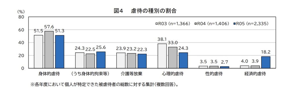 引用元:厚生労働省 令和5年度「高齢者虐待の防止、高齢者の養護者に対する支援等に関する法律」に基づく対応状況等に関する調査結果 P.4